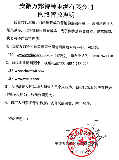 鄭重聲明:安徽萬邦特種電纜有限公司官方網站為:www_wanbangcable_com.buyiku.com.cn,除此之外無任何子網站或合作網站,其余均為假冒偽劣。電話:0550-7621728 13485756353 地 址:安徽省天長市滁州高新技術產業開發區經四路29號